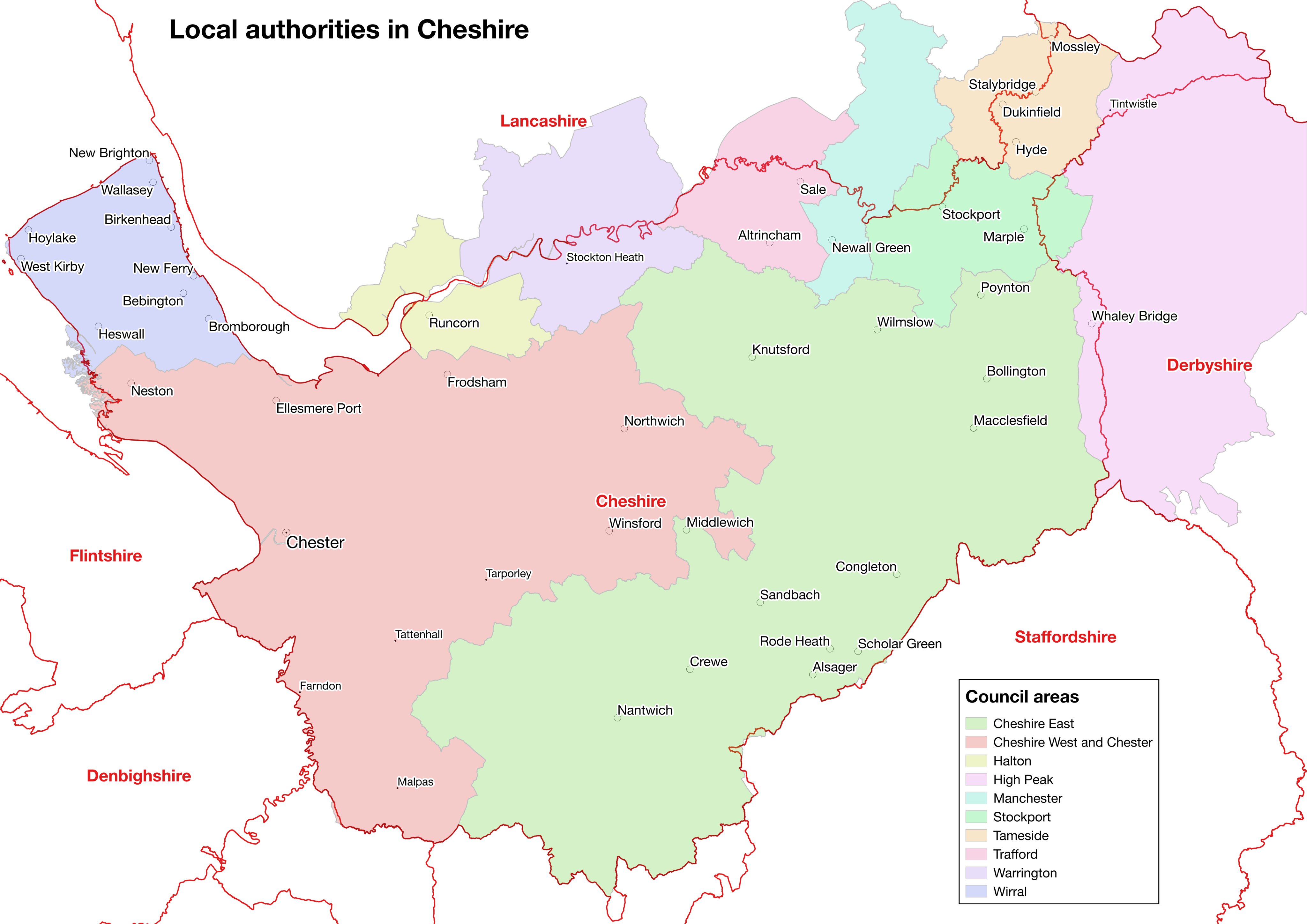 Asc British Counties on X: “Map of council areas in Cheshire