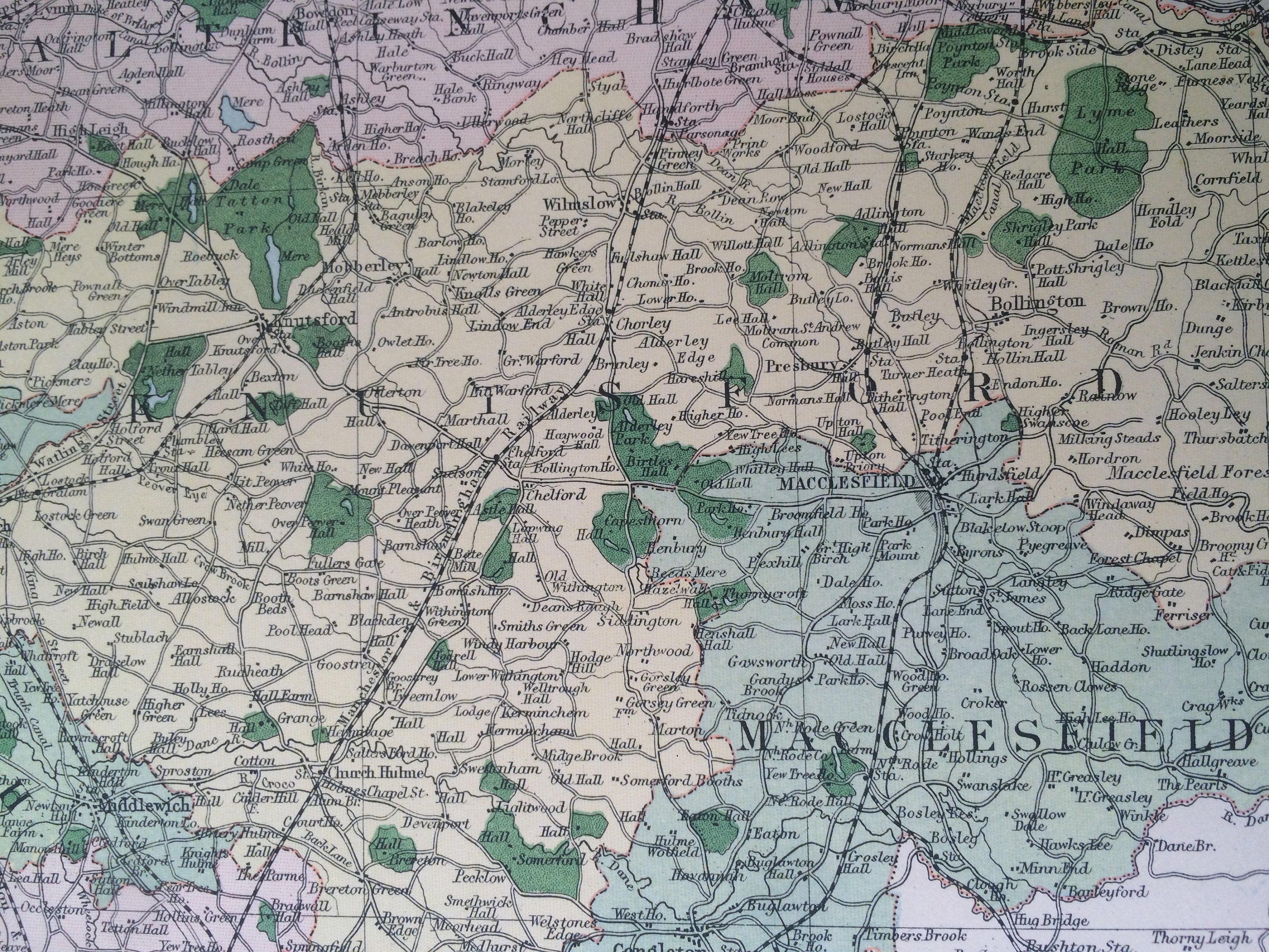 1868 Cheshire Large Original Antique Map showing railways, roads